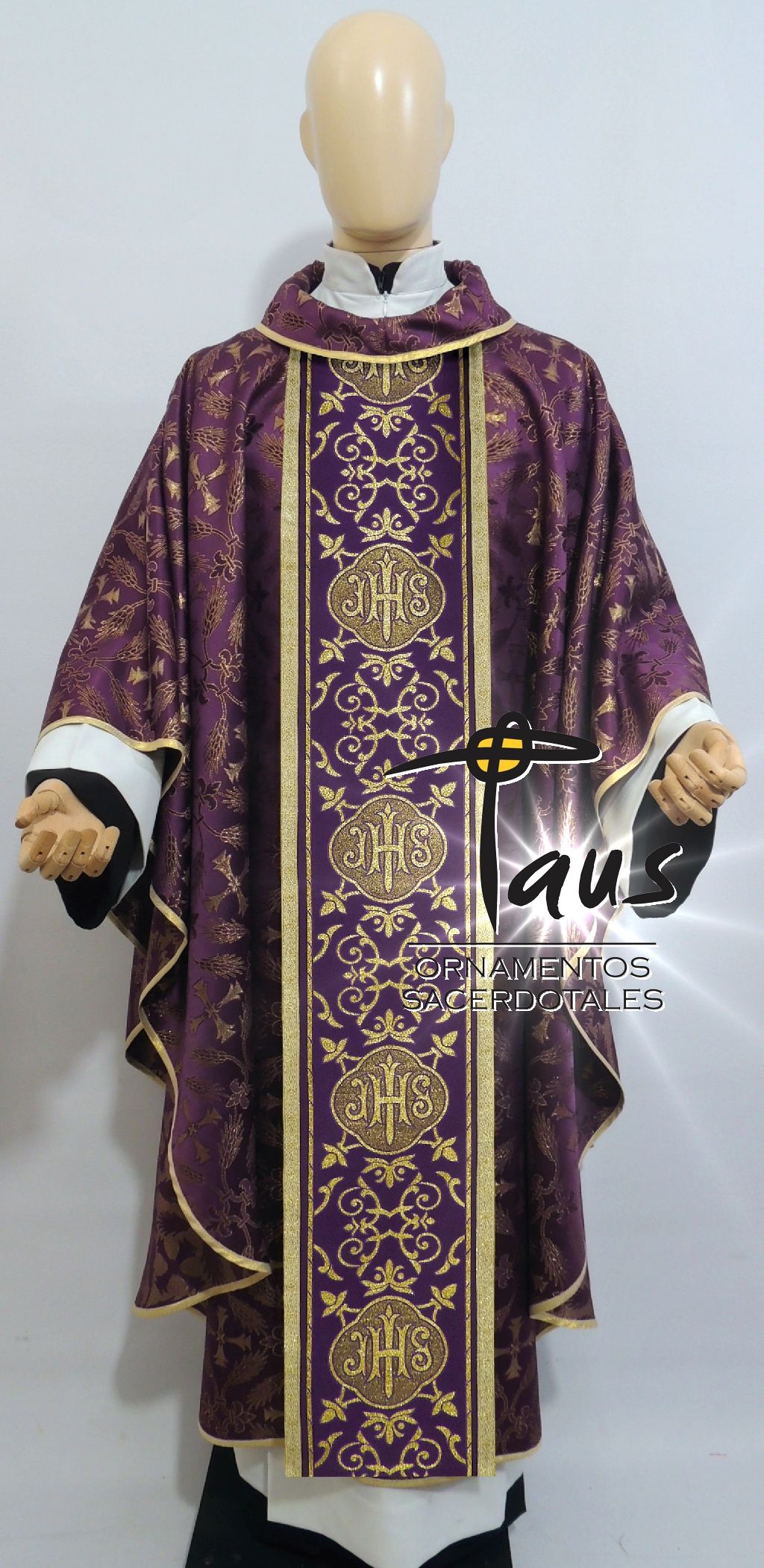 • Casulla en tela brocada importada morada con galón importado.