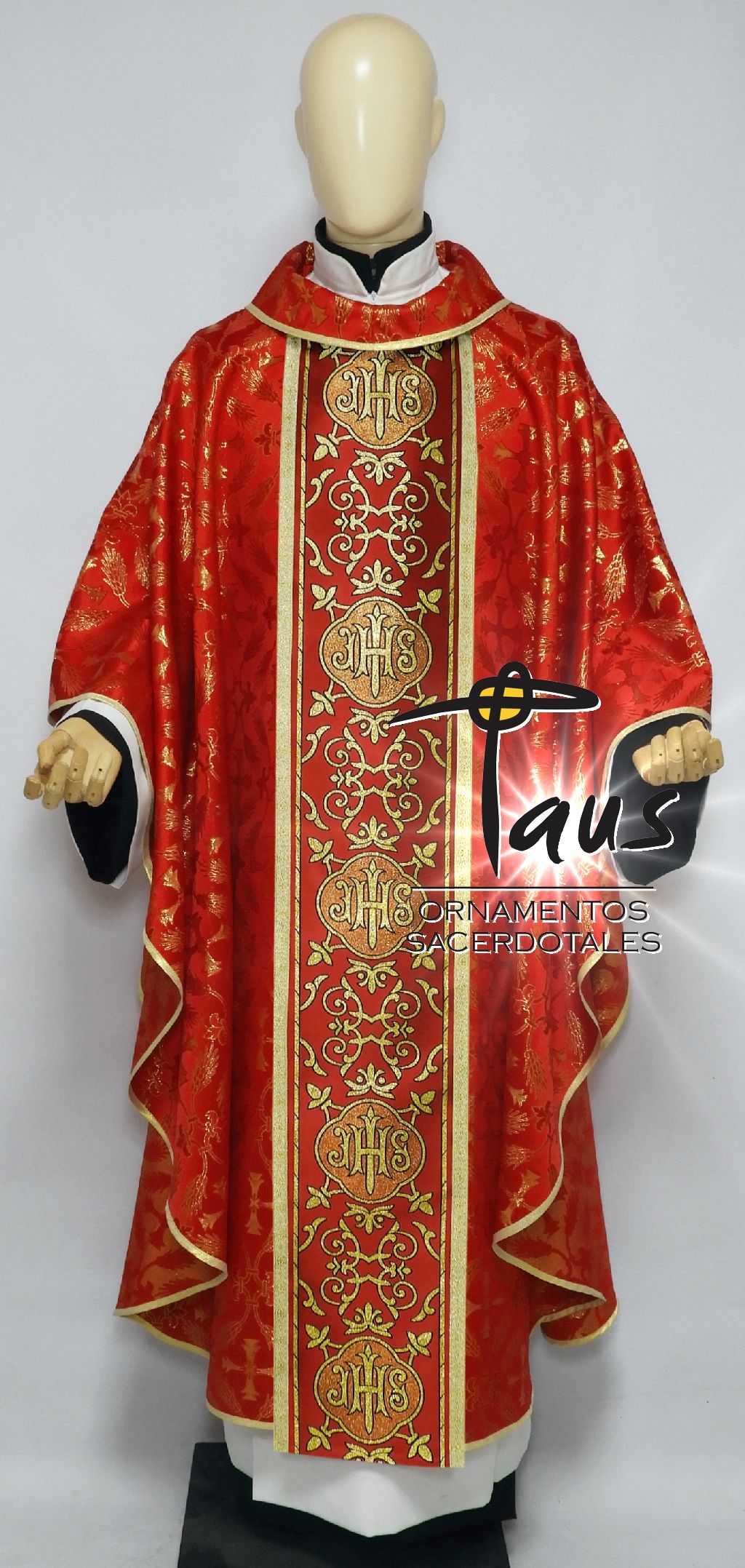 • Casulla en tela brocada importada roja con galón importado.
