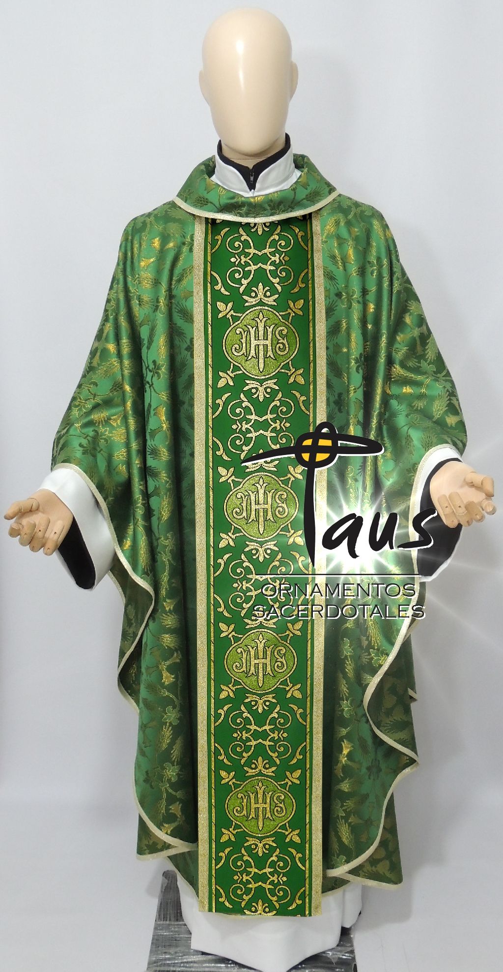 • Casulla en tela brocada importada verde con galón importado.